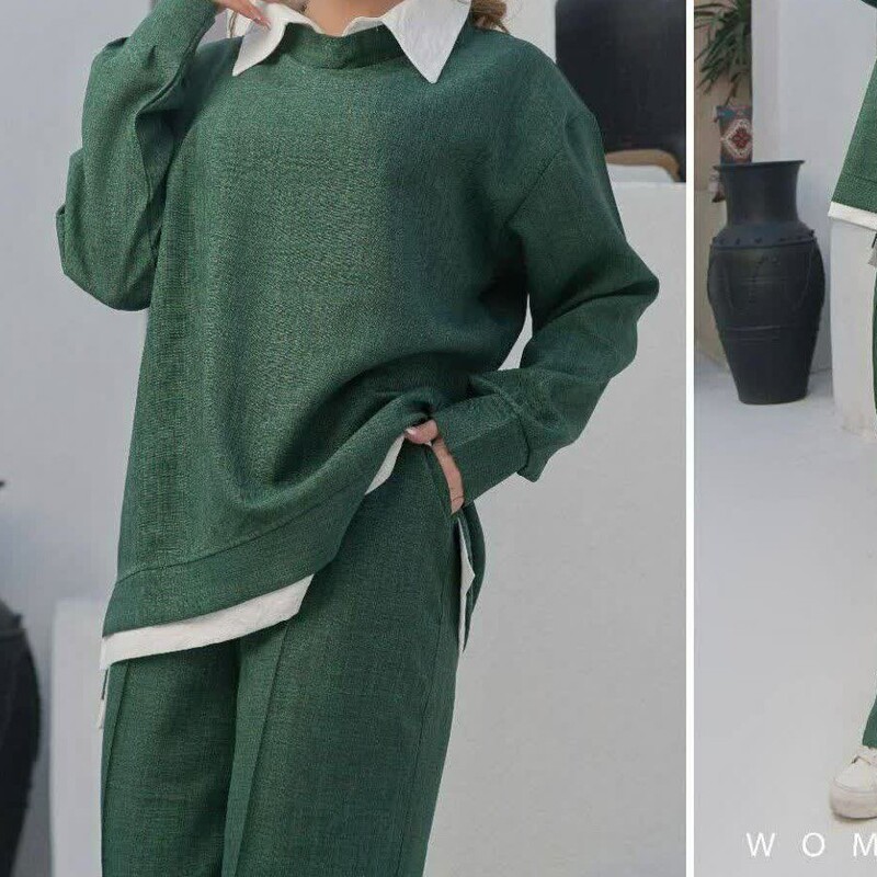 تونیک شلوار جنس : شانتون نخ👌🌱 💫رنگ بندی : ابی, آجری, آدامسی, ارتشی, طوسی, کرم, مشکی✔️ 💫سایز ها : فری۳۸تا۴۶✔️ 🛍قدتونیک حدودا ۷۵ قداستین ۵۳ دوربازو۴۰ دورسینه ۱۱۰ قدشلوار۱۰۰ دورران ۶۲ دمپا ۵۰ چاک دمپا ۱۵ سانت✔️