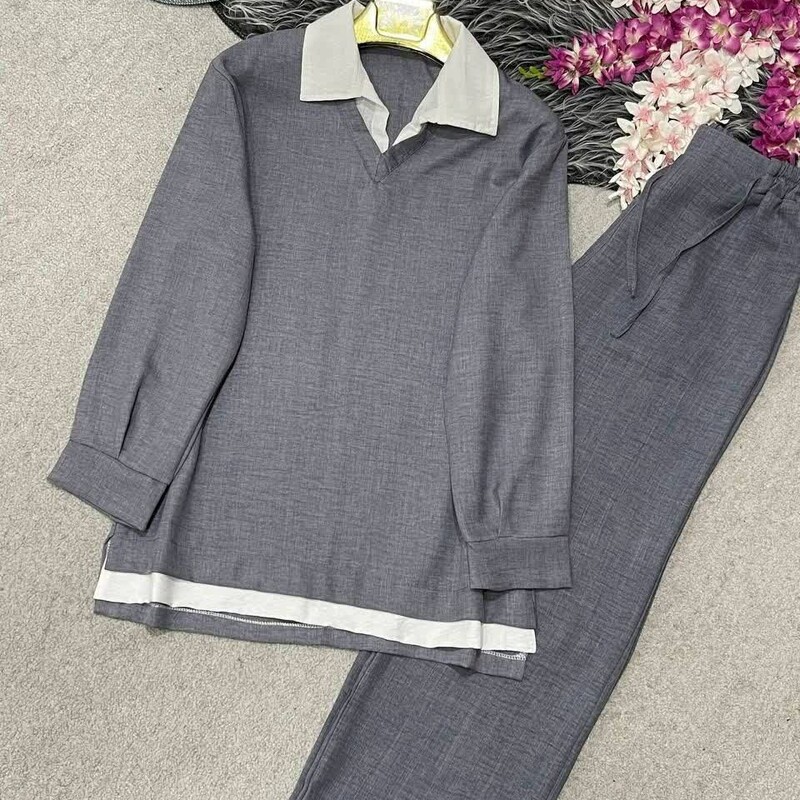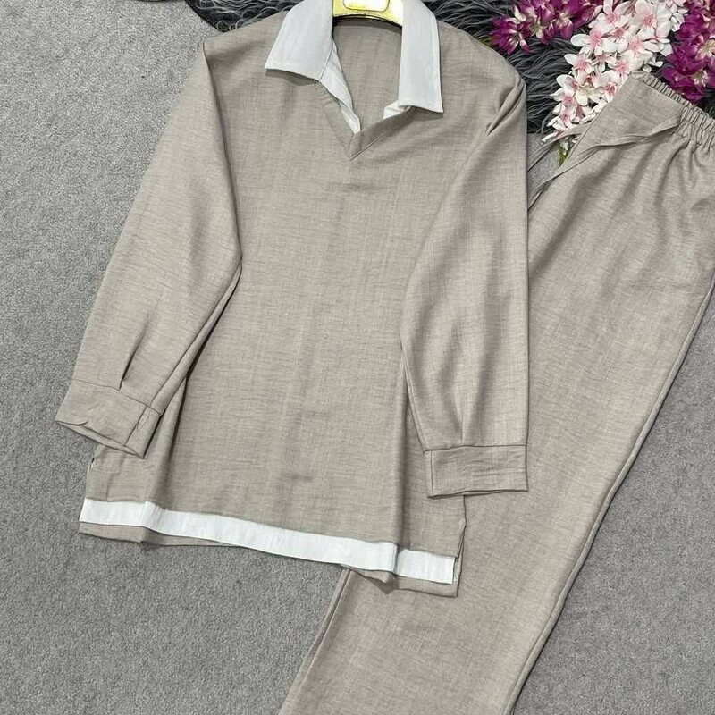 تونیک شلوار شانتون نخ خنک و تابستونی فری سایز تا 46