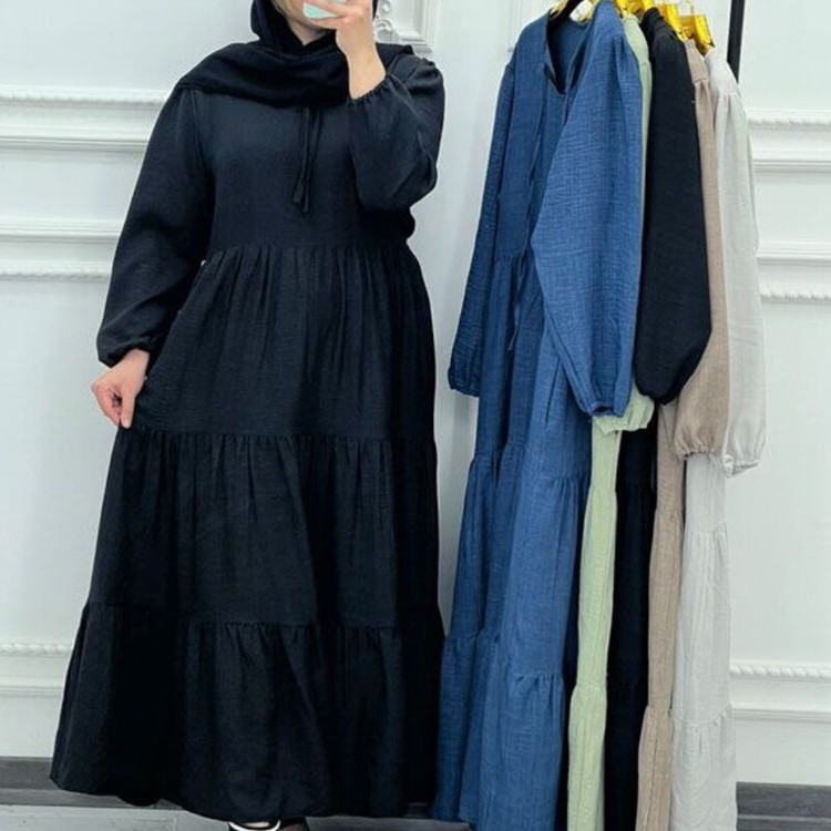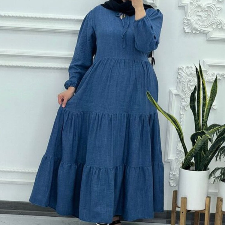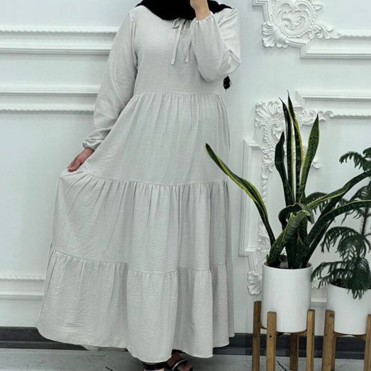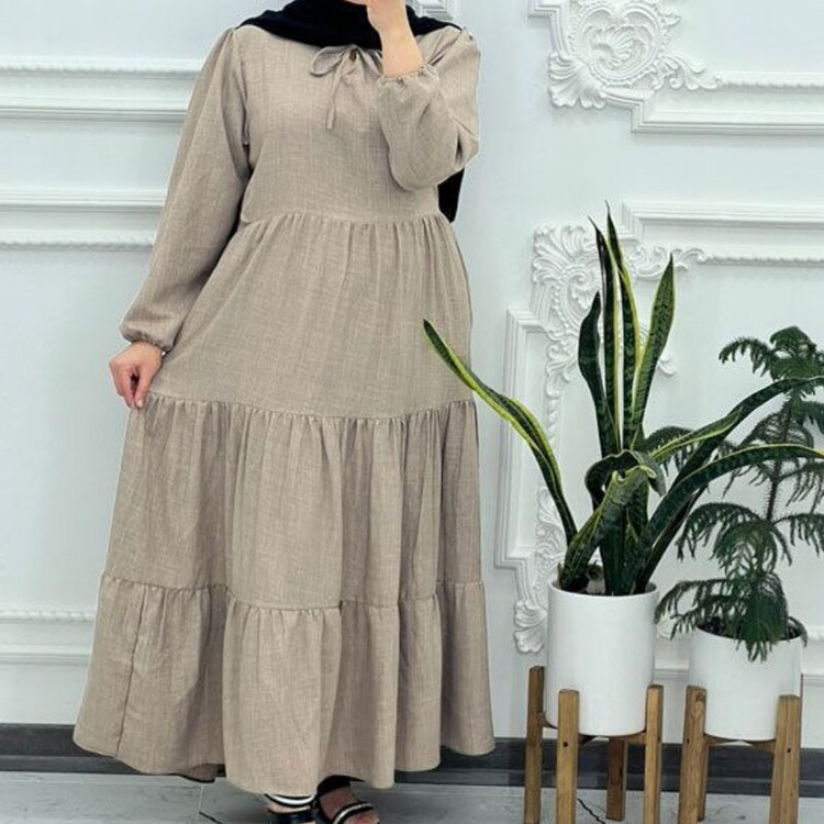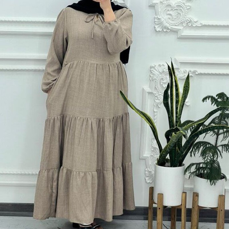 پیراهن مانتویی شانتون نخی خارجی جیب دار