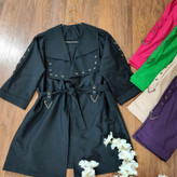 مانتو کمربند دار دور یقه و کمربند و استین پرچ کاری استیل دودی ....فوق العاده خوش استایل مناسب شیک پوشان ...دور سینه ۱۱۰...قد ۸۰...استین ۵۵ از گوشه یقه