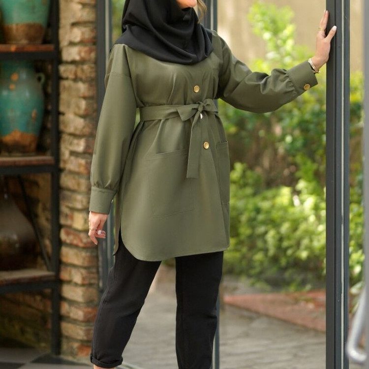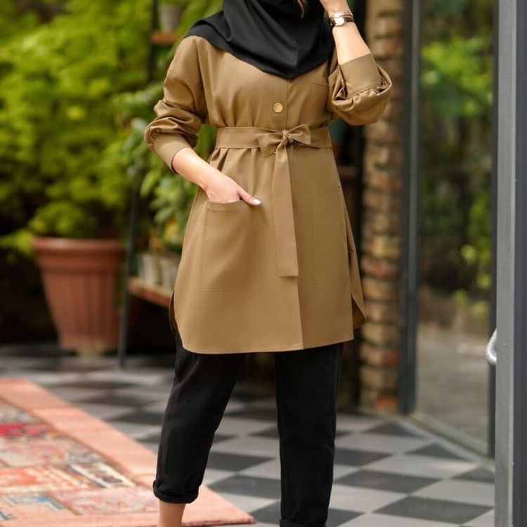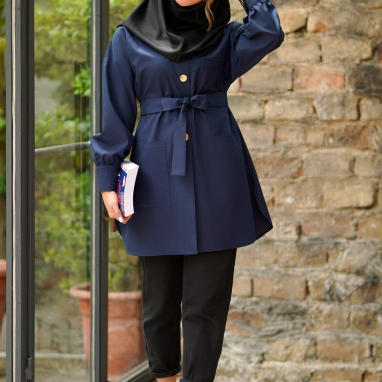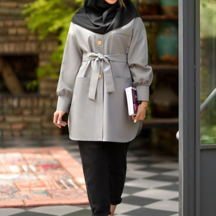 مانتو دانشجویی کوتاه اسپرت آستین مچی